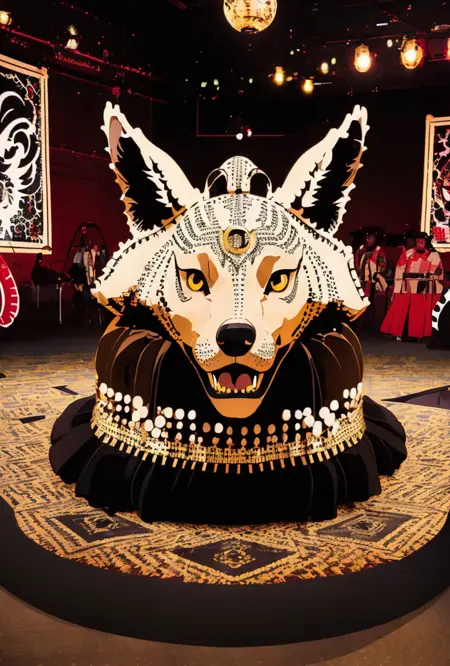 该模型可将您的提示转化为前卫艺术品——布满波点,周围环绕着镜子与灯光。
