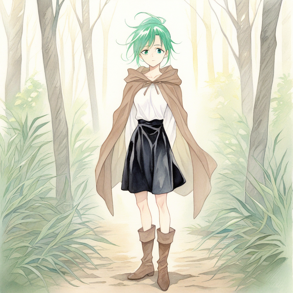 (棕色连帽长袍,帽子放下),白色衬衫,黑色裙子,靴子