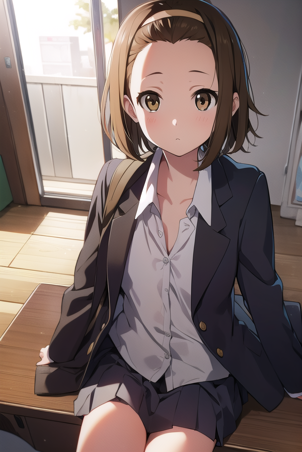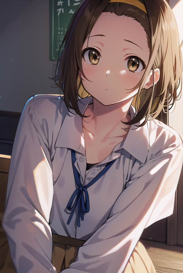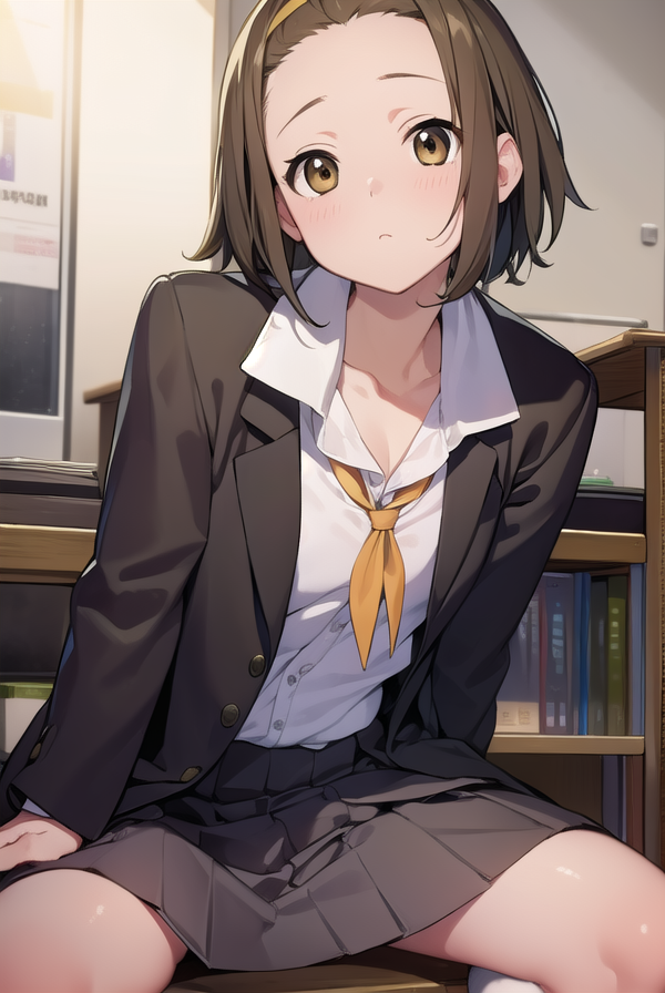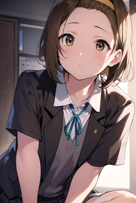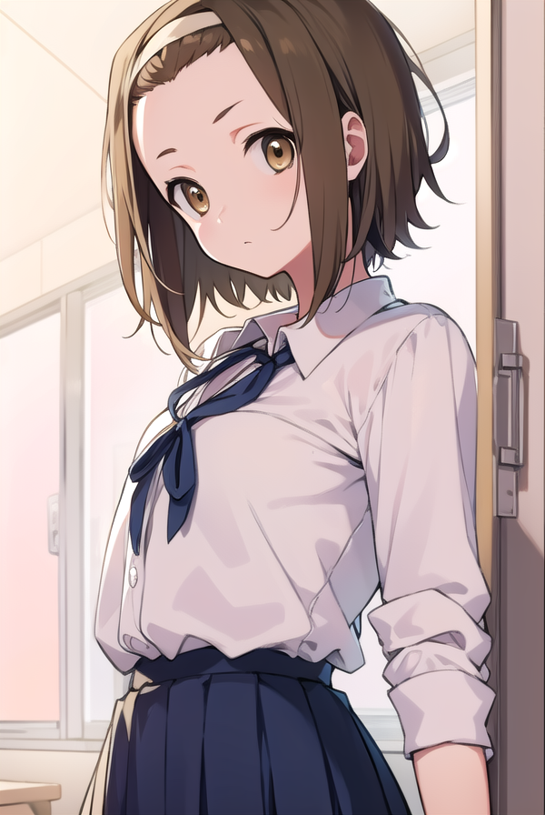ritsu tainaka, short hair, brown hair, (brown eyes:1.5), hairband, (forehead:1.2),