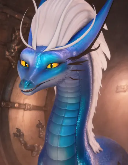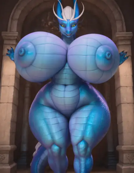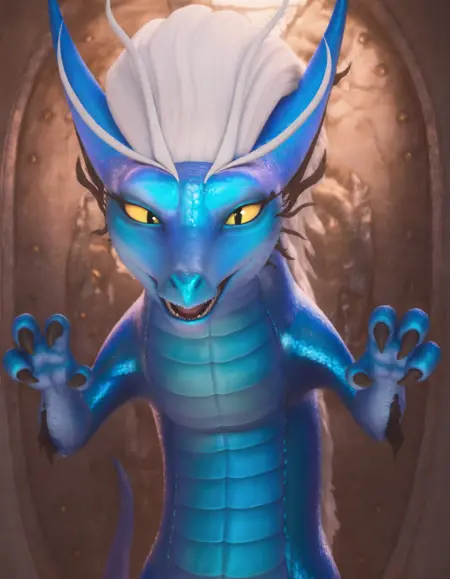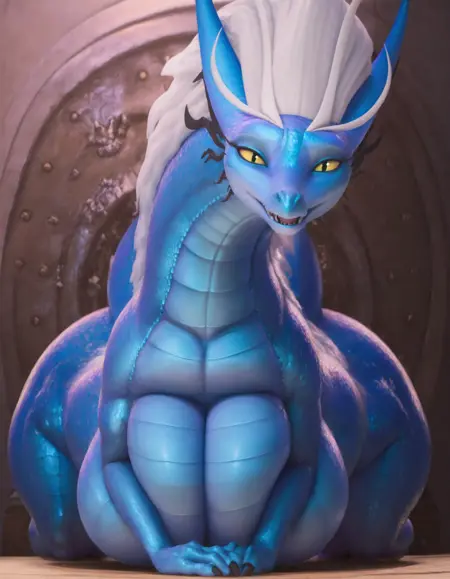 female dragon,blue skin,white hair,