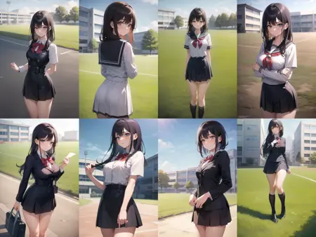LoRA:校庭の背景を生成するために学習済み。通常、背景にフィールドと校舎を含みます。複数の解像度で良好な結果を出力します。