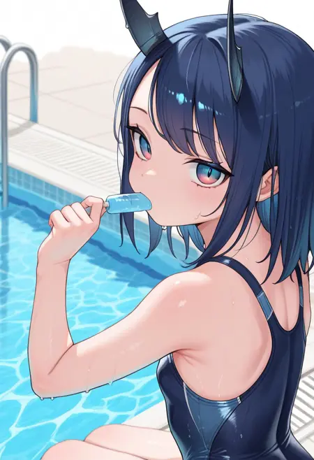外观:ruri_aoki,蓝色头发,蓝色眼睛,多彩眼睛,渐变眼睛,侧扫刘海,中长发,龙女,龙角