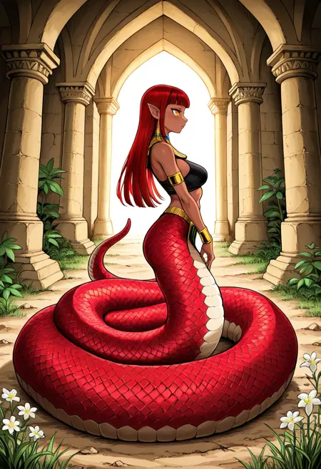 关键词为 'double deck, monster girl, erotic monster, erotic creature',但你也可以使用特定角色细节与特征,例如: