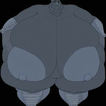 solo, fat, nipples, yellow eyes, gigantic breasts, claws, full body, no humans