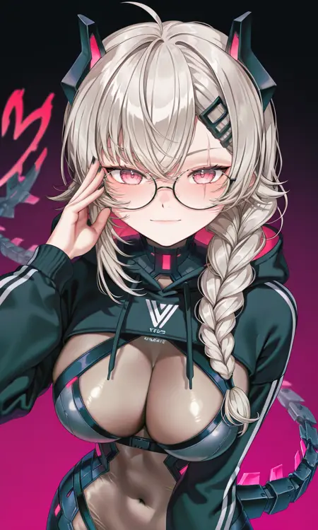| トレーニングワード | saruei (vtuber), 1girl, ahoge, bare shoulders, blush, bodysuit, braid, braided ponytail, breasts, cleavage, collarbone, french braid, gloves, grey bodysuit, hair ornament, hairclip, impossible bodysuit, impossible clothes, large breasts, long hair, mechanical ears, mechanical tail, partially fingerless gloves, ponytail, red eyes, scar, side braid, silver hairコピーしました! glasses, semi-rimless eyewear, under-rim eyewearコピーしました! |