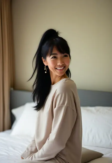이 모델은 머리 꼭대기 이상에서 시작하여 위로 뾰족하게 곡선을 그리는 꼬리머리를 생성합니다.