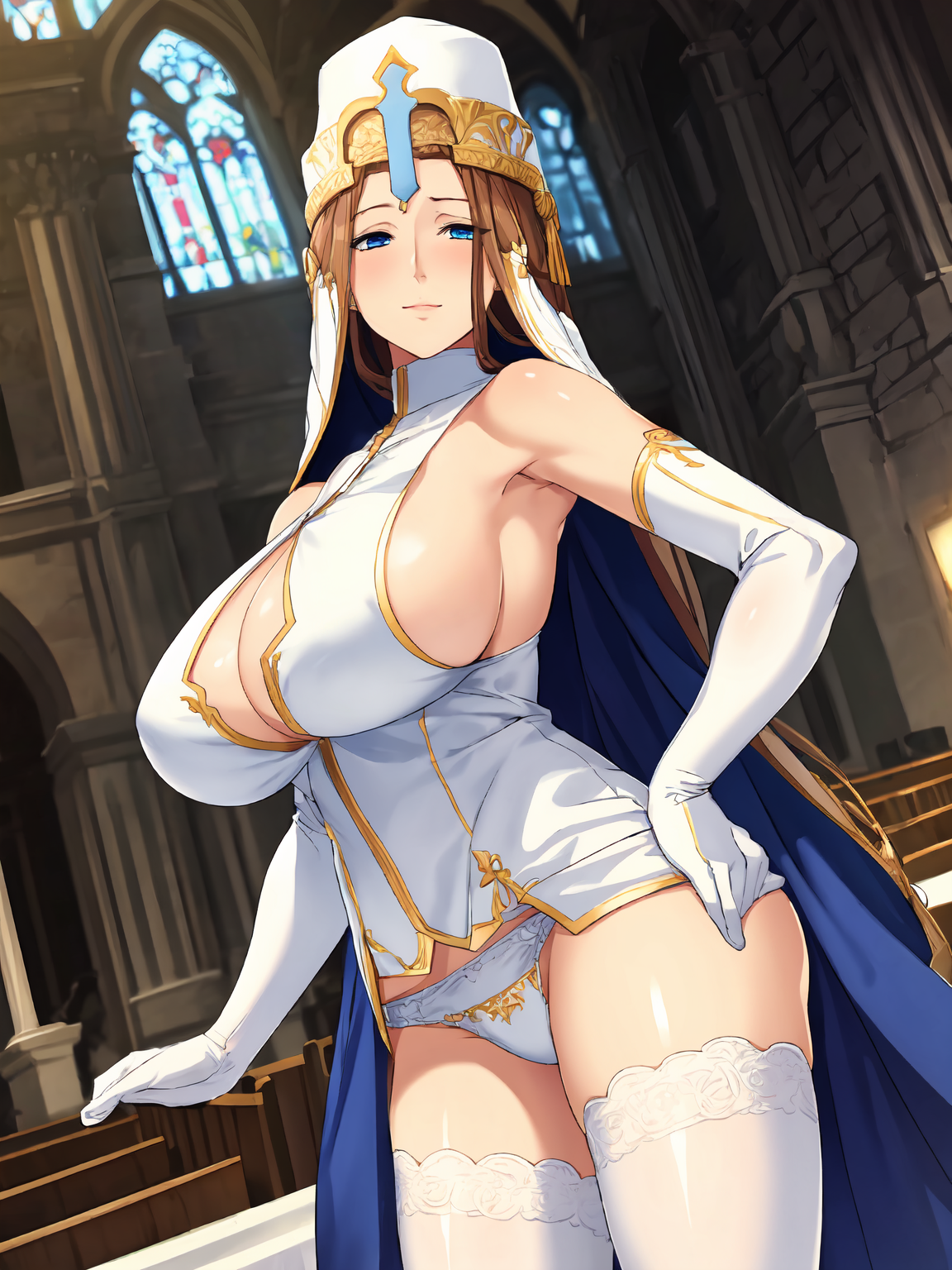 Eleonora Bern : Eleonora;棕发,蓝眼,辫子马尾;帽子,斗篷,高领,斗篷,肘部手套,服装镂空,长裙,内裤,白色过膝袜,高跟鞋