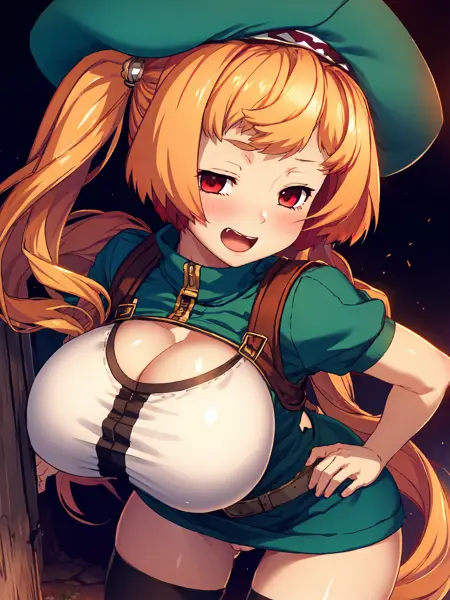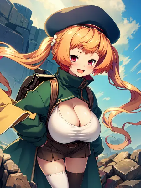 • Mel-mel: Mel; 주황색 머리, 빨간 눈, 트윈테일, 머리 장식, (드라프); 모자, 녹색 코트, 백팩, 패키지, 흰색 텃탑, 허벅지 스타킹, 부츠, (생식기에는 반창고, maebari)