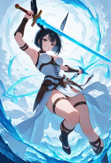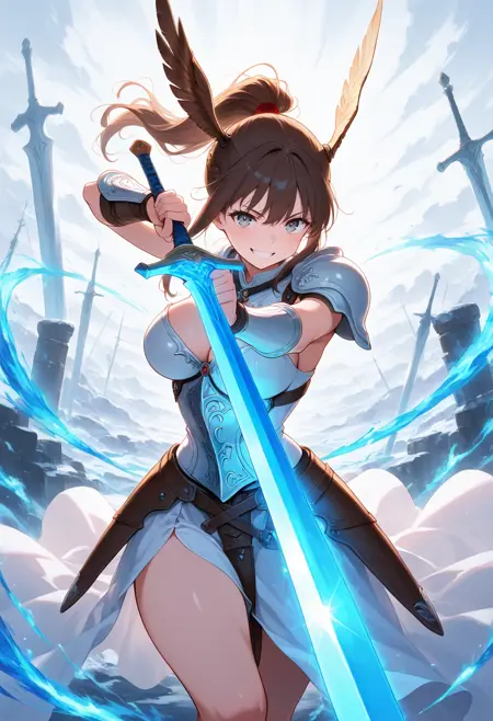 勇ましくも美しい戦乙女に幻想的な剣を持たせられるかもしれないLoRAです。