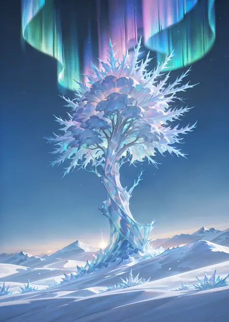非常适合生成令人惊叹的奇幻冬季景观。将角色与较低权重结合使用,也能产生出色的效果。