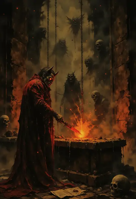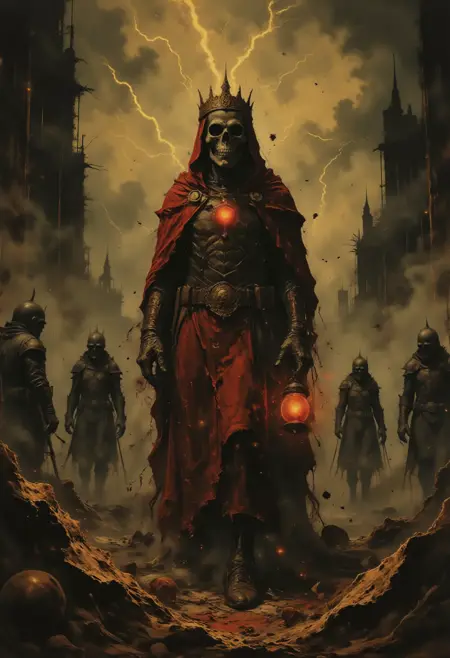 The hallmark of this LoRA lies in its ability to create atmospheric compositions—be it decrepit castles, haunted corridors, cursed forests, or menacing characters draped in crimson and black. Its aesthetic is further enriched by glowing accents (like fiery swords, spectral eyes, or enchanted objects), which contrast beautifully against dark, decayed backdrops. This interplay of light and shadow creates a visual tension that’s both captivating and terrifying.