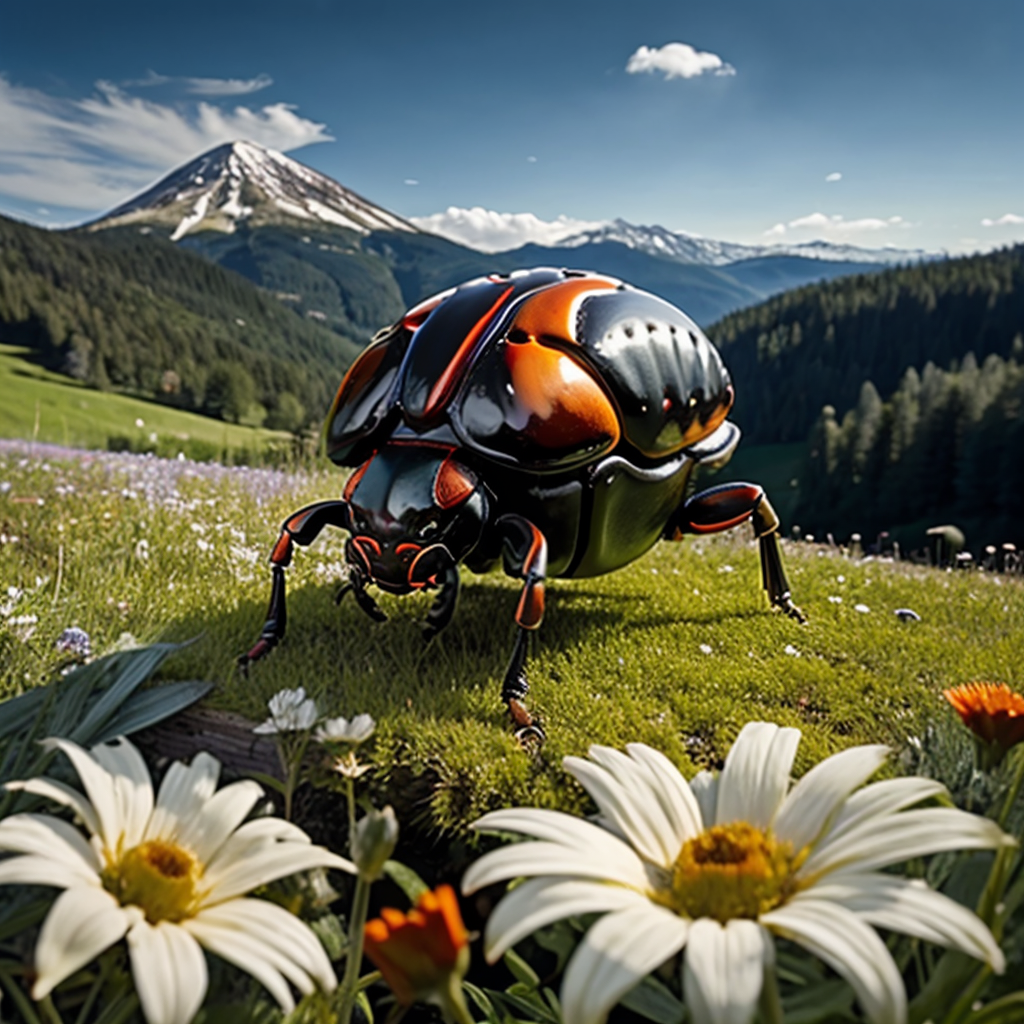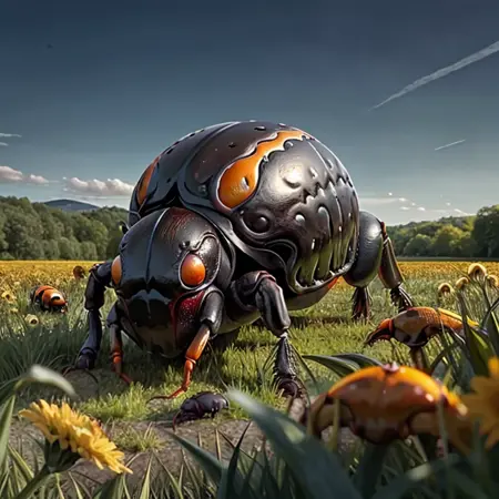 This is a LoRA to create GIANT BEETLES for a medieval rpg. You have to be very careful with the contributions of each of the descriptors - especially yellow beetle for it will almost definitely turn the subject into a VW Beetle. The checkpoints definitely want to turn the beetles into cars or mechas, so play around with the contributions until you get something you like.