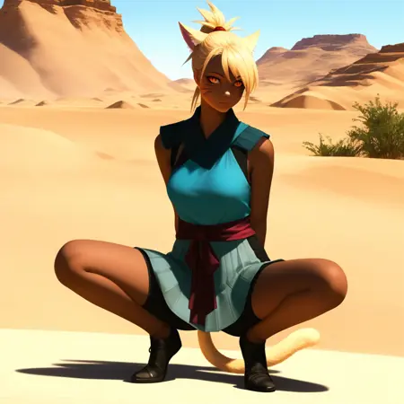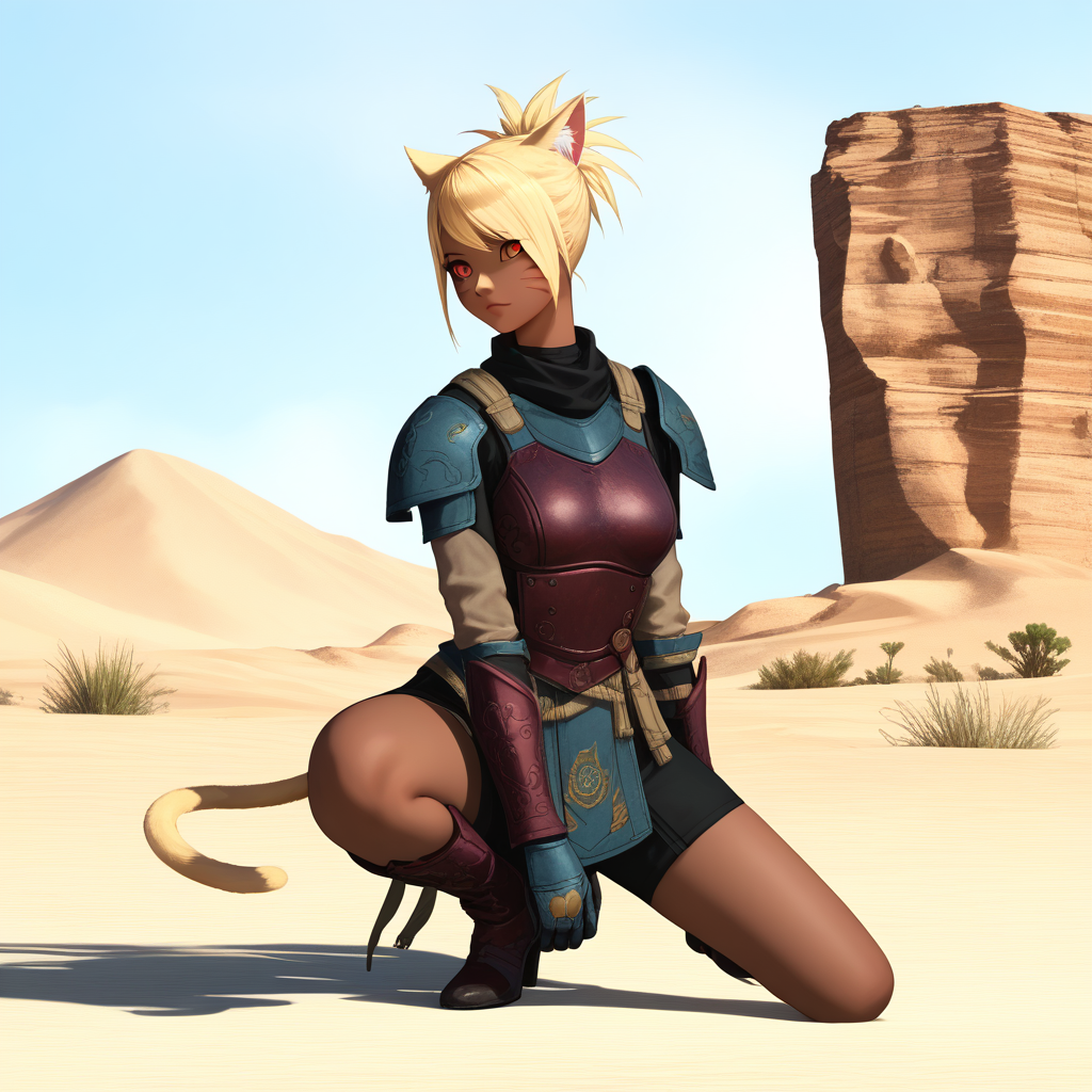 도움이 되는 단어: 금발, 고양이 귀, miqo'te, 얼굴 무늬, 검은 피부, 단발, 꼬리머리, 고양이 눈, 주황색 눈, 고양이 꼬리,