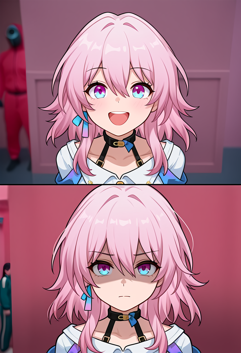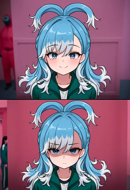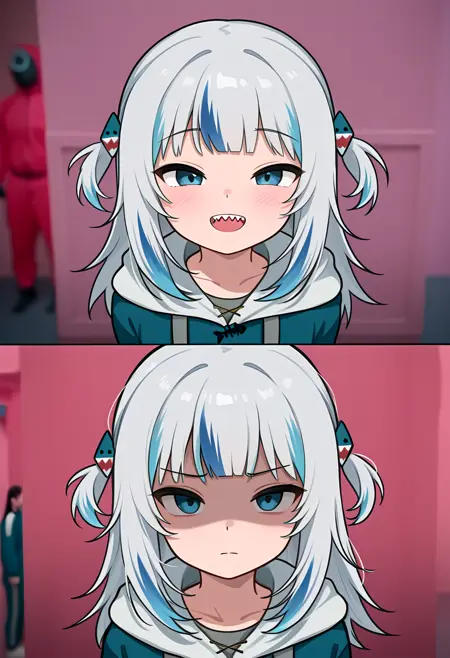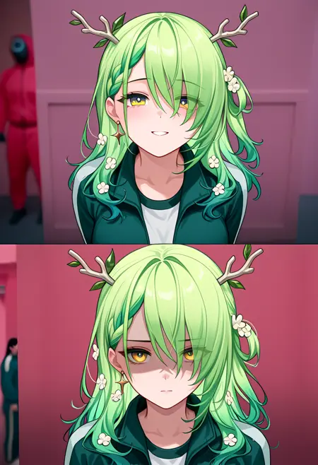 触发词:之前和之后、鱿鱼游戏、部分遮蔽的脸部,