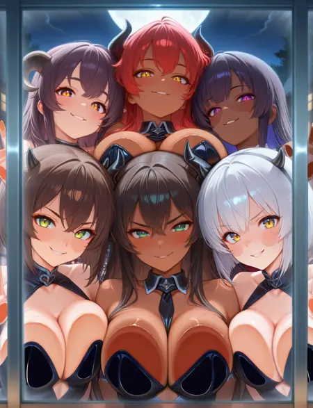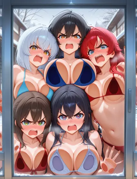 トリガー語: against glass, (4girls, 5girls, 6+girls)