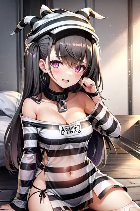 2023/05/07:这个lora的V1是很久之前做的了,那时我对触发词掌握不好,建议的咒语是" striped" "prisoner clothes"。