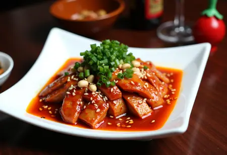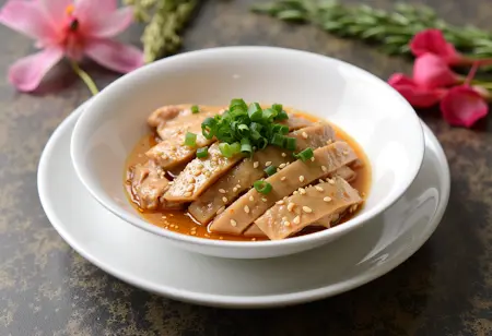 A chinese food lora,**Steamed Chicken with Chili Sauce,**Chinese phonetic alphabet:“kou shui ji”,It's important to note that this dish doesn't actually contain saliva. It's a Chinese idiom used to exaggerate how delicious and appetizing a dish is. The literal meaning is that the dish is so fragrant and tasty that it will make you drool.
