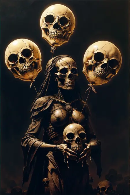 웨인 바로우의 독특하고 매력적인 스타일을 구현하려면, 트리거 단어 **"by wayne barlowe"**를 사용해보세요. 또한, "painting", "demon", "dark", "creepy", "horror", "surreal", "fantasy", "nightmare" 같은 프롬프트를 추가해보세요. (쇼케이스 이미지 참조)