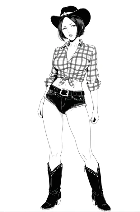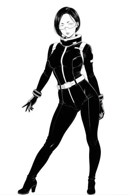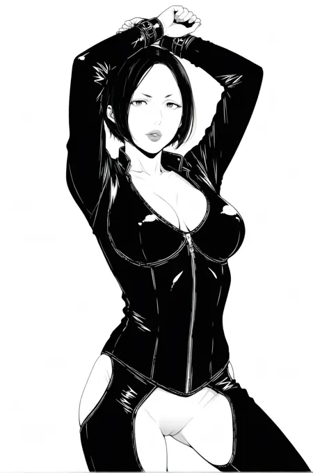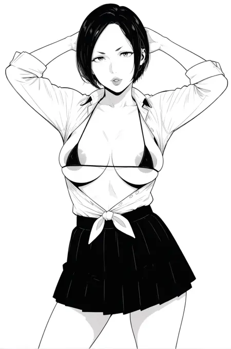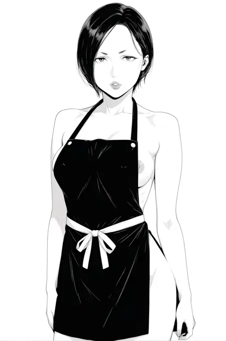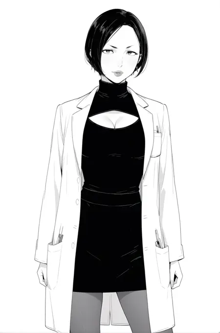 nagisaooshima, monochrome, greyscale, mature female, short hair, parted bangs, black hair, lips, medium breasts