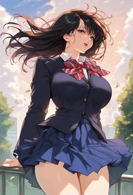 触发词:toujou_aya,黑发,长发,大胸,校服,裙子,内裤,