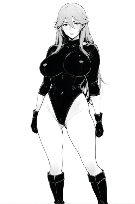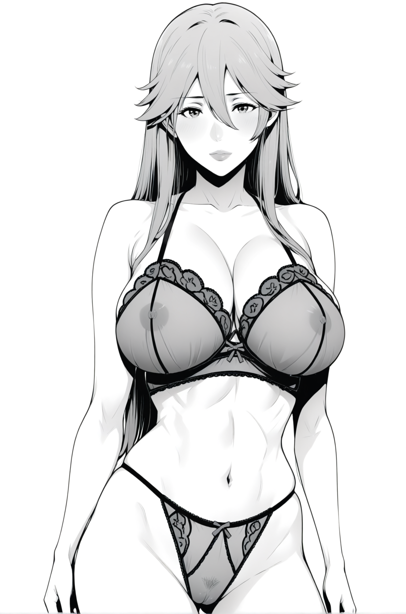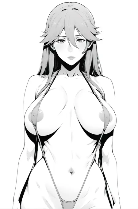 atsumimarko, monochrome, greyscale, mature female, long hair, hair between eyes, bangs, large breasts