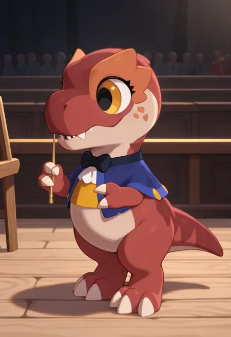 ポッピー・ザ・ティラノサウルスは、有名な映画スターでティラノサウルスの夫婦であるスタンとロベールタ・レクスハートの娘である。注目の中心になることは元々彼女には自然ではなく、時間とともに両親の名声に伴う栄光と期待に嫌気が差すようになった。彼女の本当の情熱は古典音楽であり、ポッピーは自身のオーケストラで指揮することを夢見て、数えきれないほどの時間を交響曲やオペラの作曲に費やしている。ポッピーの短くて丸い腕と不器用な性質は、この夢を実現するのをほぼ不可能にしているが、彼女の執念深さと燃えるような情熱が、彼女を常に目標へとさらに近づけていく。貴族的な生活を捨て、ポッピーは今、音楽の夢を現実にする方法を探し、自分自身が本当に手に入れたと感じられる名前を築こうとしている。