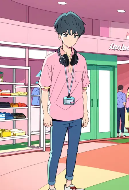 彼に仕事用のユニフォームを着せたい場合は、プロンプトに「ピンクのシャツ」と「IDカードを着用」を追加してください。