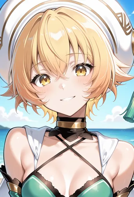 노란 눈, 금발, 단발, 작은 가슴,