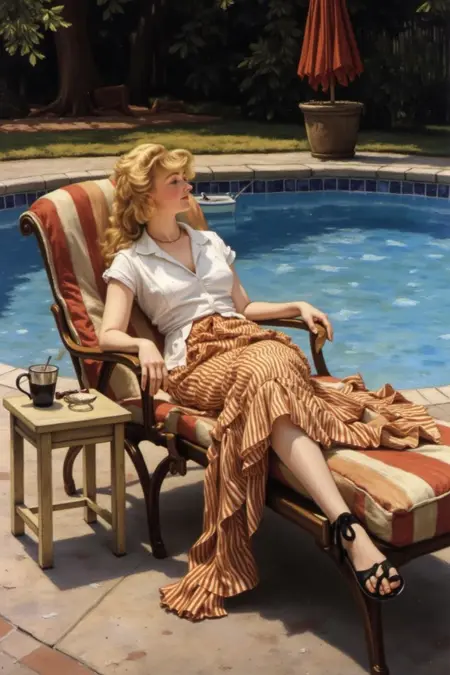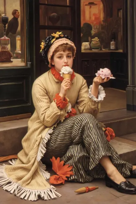 LoRA는 매우 유연하며 대부분의 프롬프트를 잘 처리하지만, 빅토리아 시대 또는 벨 에포크의 요소를 추가하면 그의 매력적이고 우아한 스타일에 더 가까운 이미지를 얻을 수 있습니다. 전체 효과를 얻으려면 강도를 1로 설정하세요. 시작할 때 "_19세기 말 빅토리아 시대의 풍경..."과 같이 프롬프트를 시작하는 것이 좋습니다.