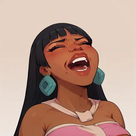 JJJlaughV1.1 laugh, head leaning back, open mouth, closed eyes, head leaned back, leaned back,