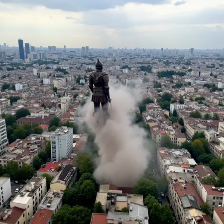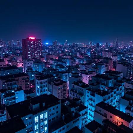 结尾部分“从附近屋顶拍摄”能可靠地将图像从遥远的航拍全景拉近,呈现出更贴近的都市蔓延感。不过,你也可以自由尝试各种视角相关的创意。