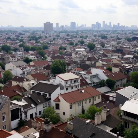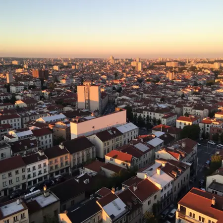 urjungle 拍摄的 XX 城市蔓延的屋顶与建筑,从附近屋顶 YY 视角拍摄。