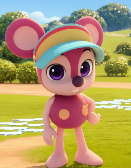 jordi_pfws, visor cap, buck teeth, purple eyes, mouse ears