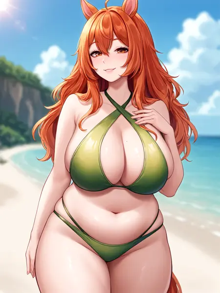 lucahVA, 1girl, horse girl, orange hair, orange eyes, huge breasts