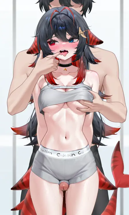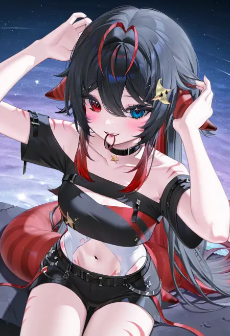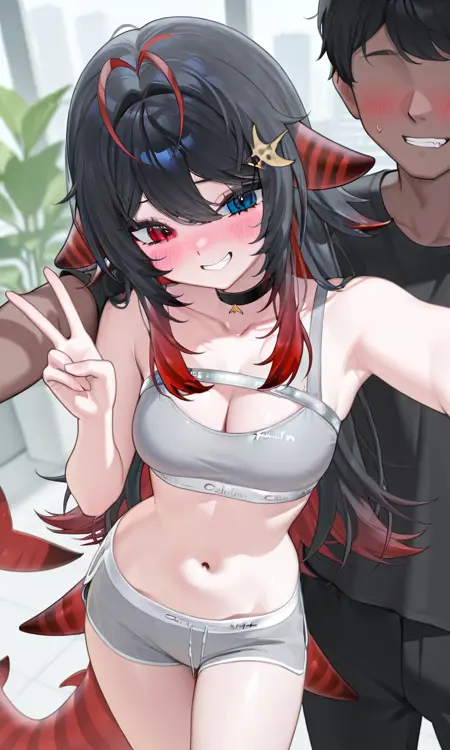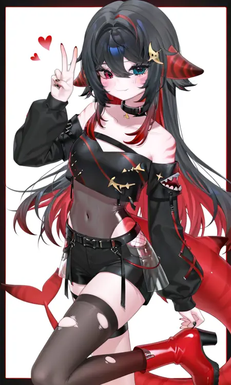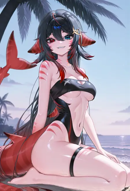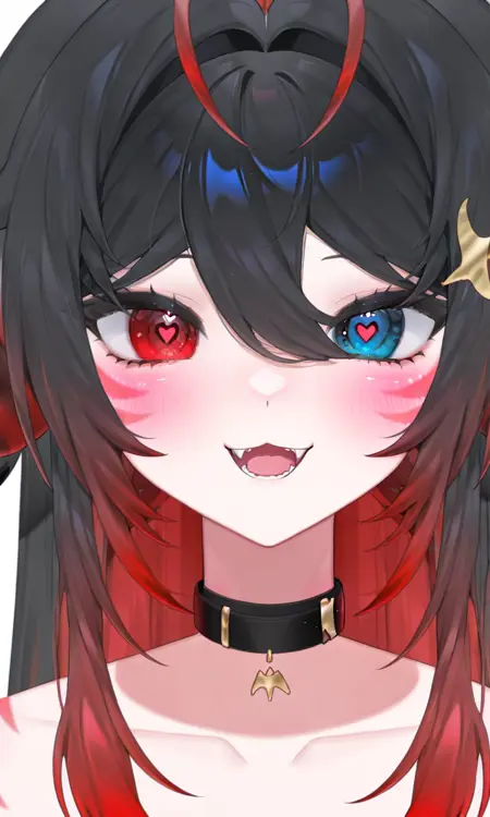 검은 머리에 빨간색과 파란색 눈을 가진 상어 소녀 Vtuber (오래된 모델)