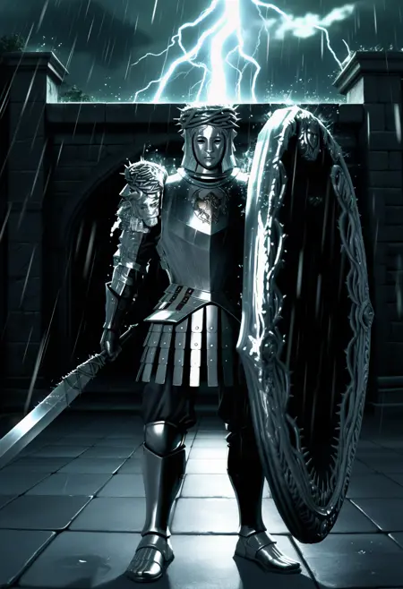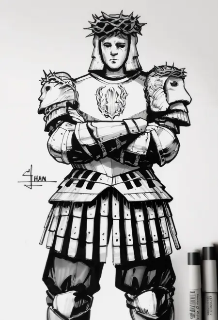 您也可以使用此LoRA生成角色,同时保留盔甲风格