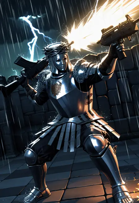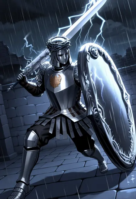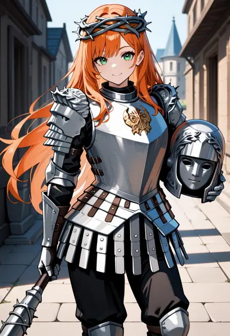 Looks tags: helmet, mask, crown of thorns, armor, breastplate, chainmail, pauldrons, gauntlets, faulds, greaves