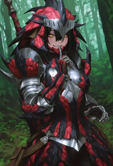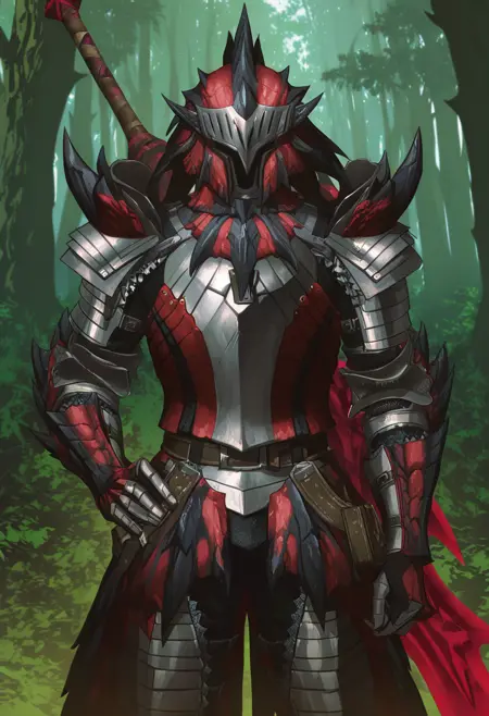 推荐正面提示词:red/azure/silver* rathalos armor, helmet, rathalternate**, rathoriginal**