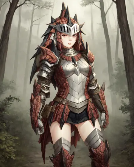 推荐正面提示词:red/azure/silver* rathalos armor, helmet, rathalternate**, rathoriginal**