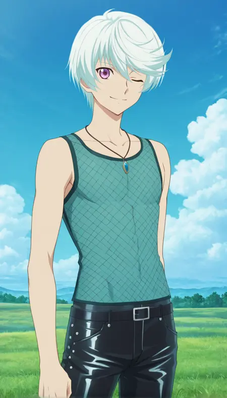 Trigger words: mickleo,bishounen,white hair,purple eyes,