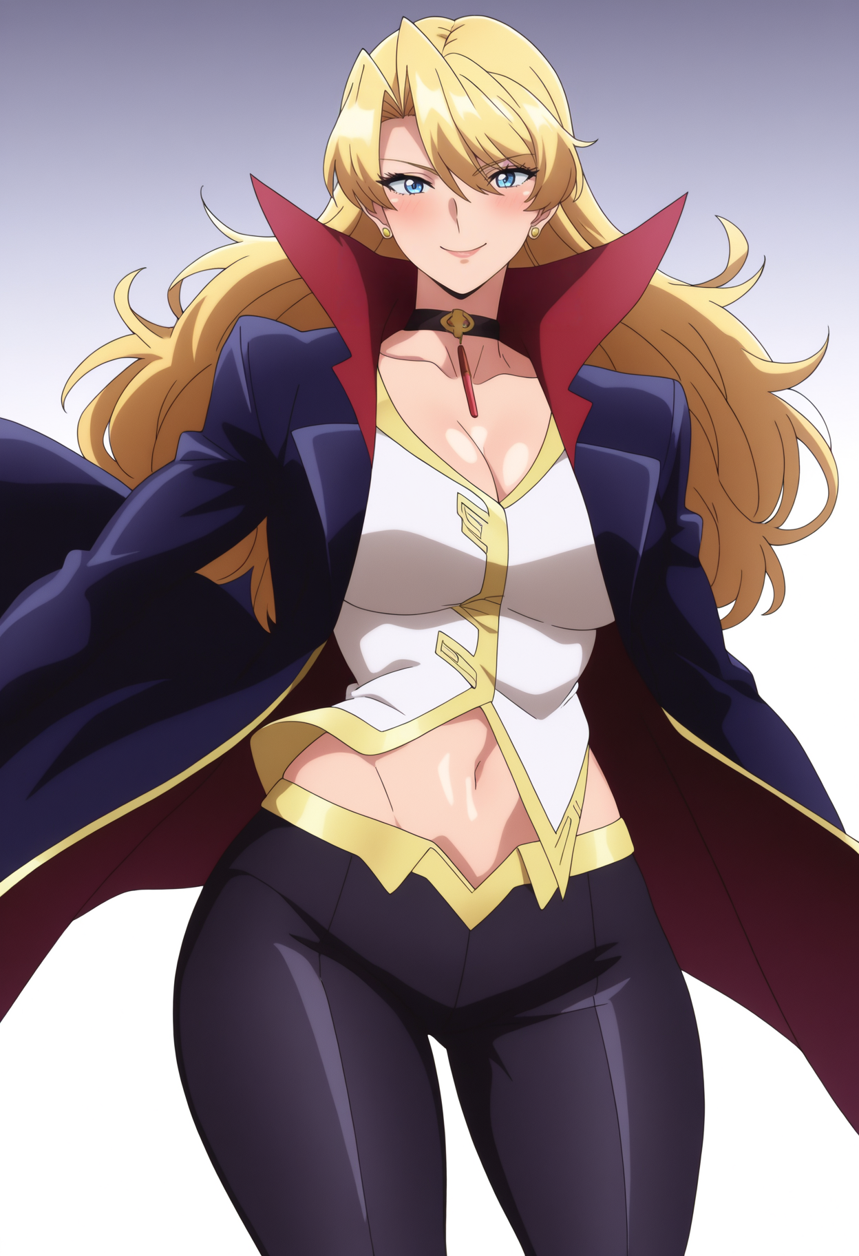 Outfit prompts : choker, jacket, white shirt, gloves, black pants, midriff, belt, knee boots