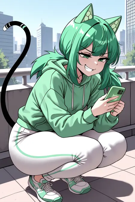 トリガー単語は「adrchan」で、「緑の髪、猫の耳、低いツインテール、緑の目」は必須です。
