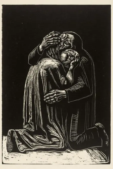 凯绥·珂勒惠支(1867年7月8日–1945年4月22日) 是一位德国艺术家与版画家,以其情感强烈、描绘工人阶级苦难、战争影响以及妇女儿童悲惨境遇的作品而闻名。凭借卓越的蚀刻、石版画、木刻与雕塑技艺,珂勒惠支成为其时代最具影响力的艺术家之一,将社会批判与深切的人文关怀融为一体。