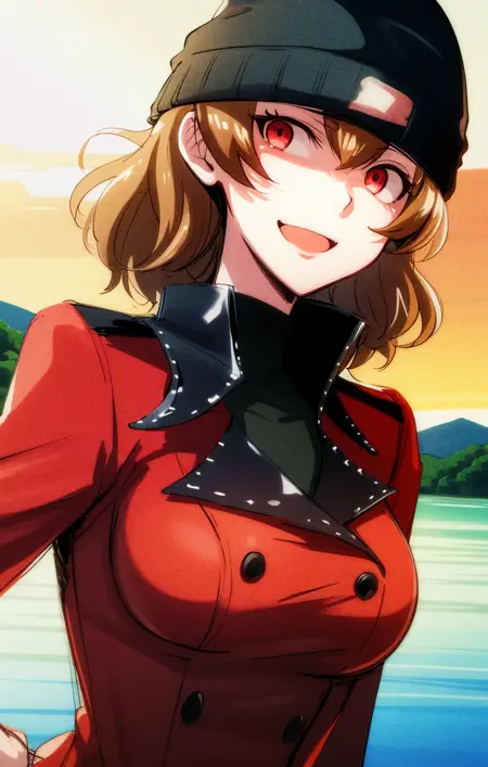 'Shinjiro Aragaki [Persona], trench coat, black shirt, beanie, dark brown hair, red eyes' - Example prompt for the nice red jacket.
