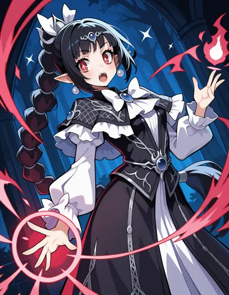 long dress, black dress, frills, puffy sleeves, earrings, hair ribbon, white bow, capelet, mary janes