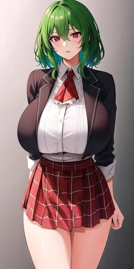 - YuukaRedPlaidOutfit(彼女のデフォルトの赤チェック柄のベストとスカート)