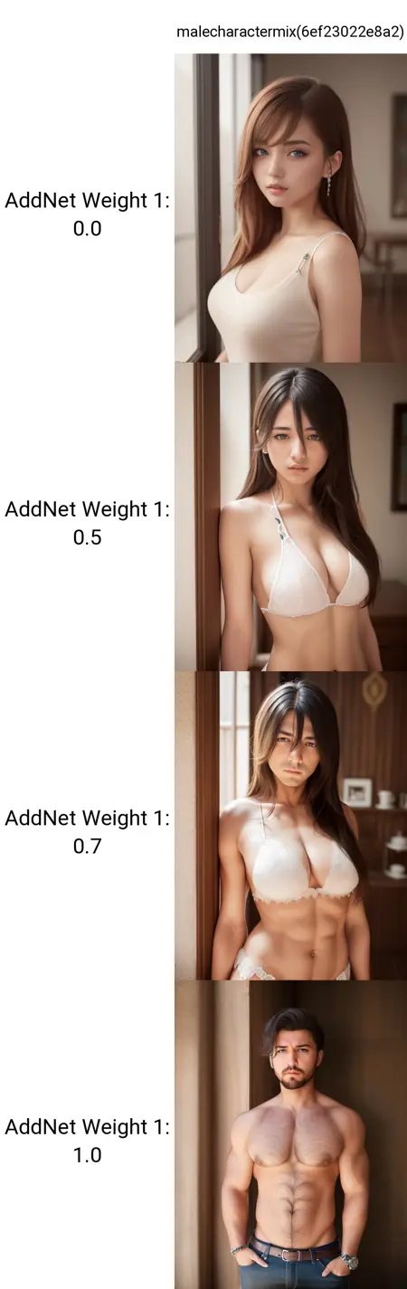 Generation suggestion: Weights: 0.7-1, 1 would be full male gender characteristics.