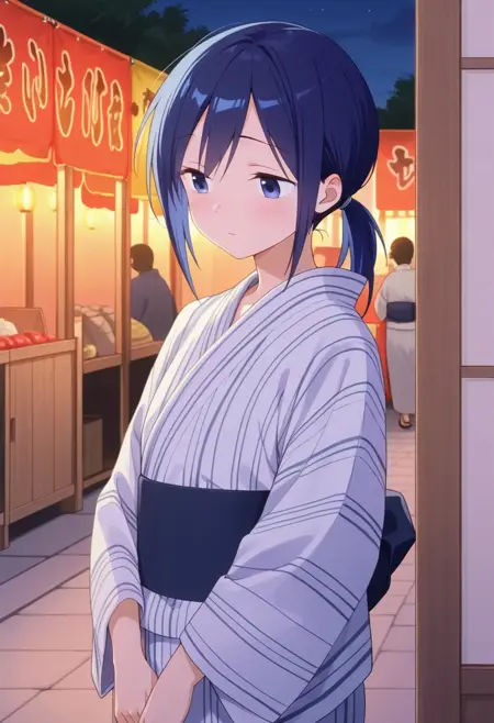 トリガー単語: kudo hazuki、ポニーテール、青い髪、青い目