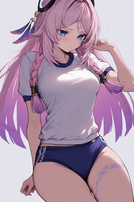 长发、粉发、蓝眼、胸部、面部纹身、露肩、发辫、额头标记、粉红色瞳孔、紧身衣、珠宝、发饰、角斗士凉鞋