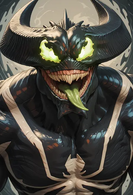 트리거 단어: fallenvenom, symbiote, sharp teeth, glowing eyes